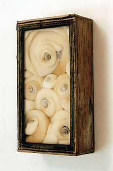 Zigarrenkiste,Glas, Farbe,Schaumstoff, Schneckengehäuse, Baumrinde |